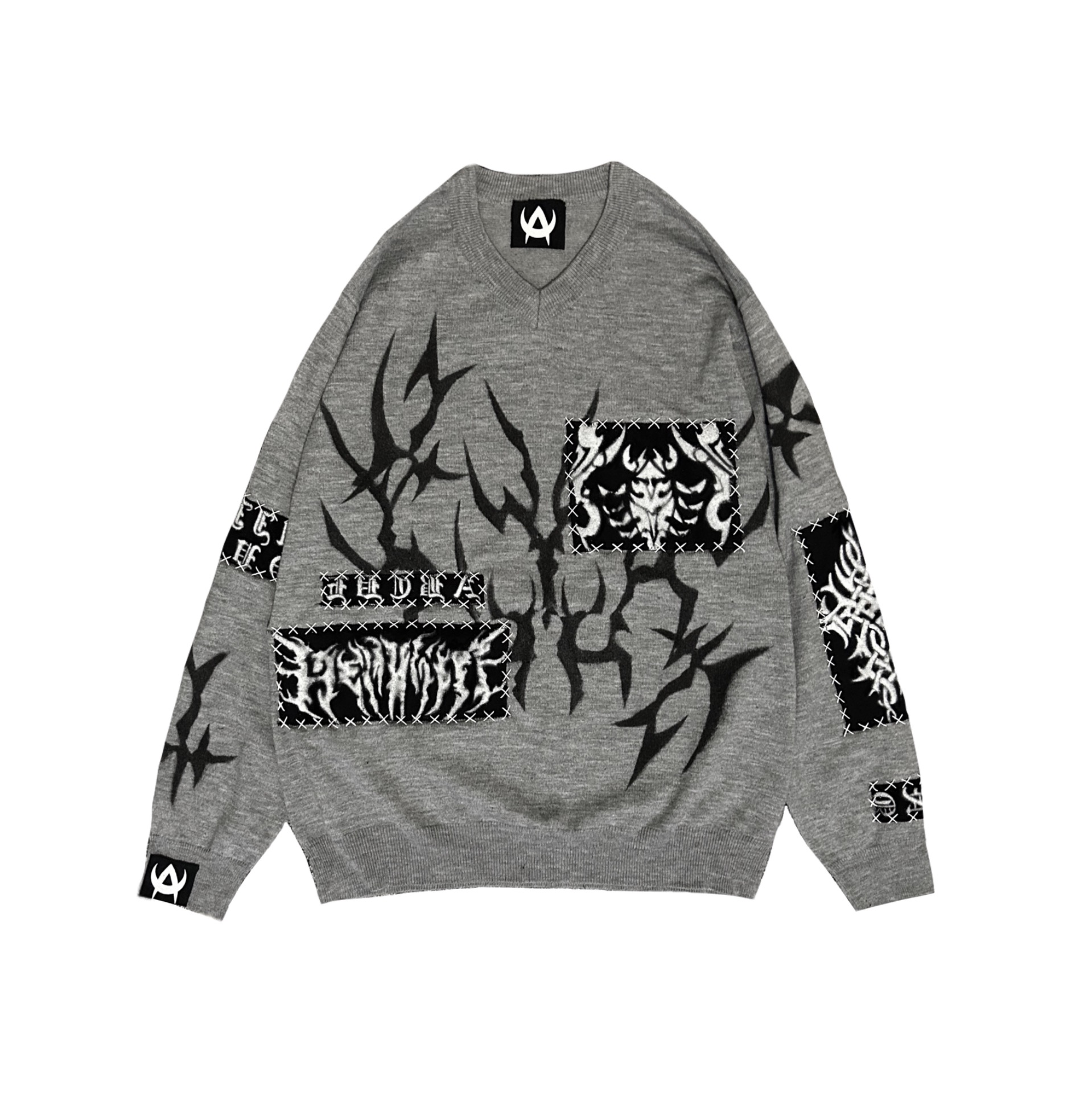 ♱ custom sweater with airbrush print and patches ♱